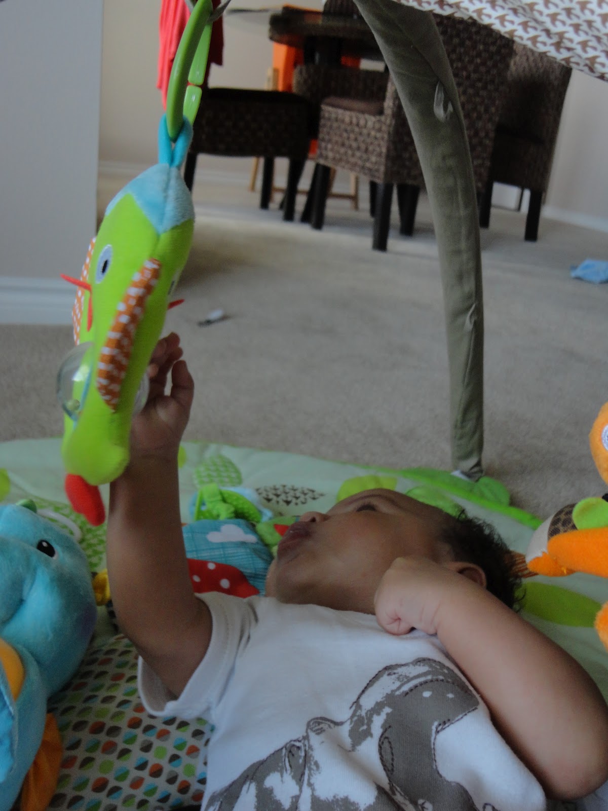 And he's getting really good and grabbing toys and putting them in his mouth. I am just loving being his Mama and watching him grow and develop!